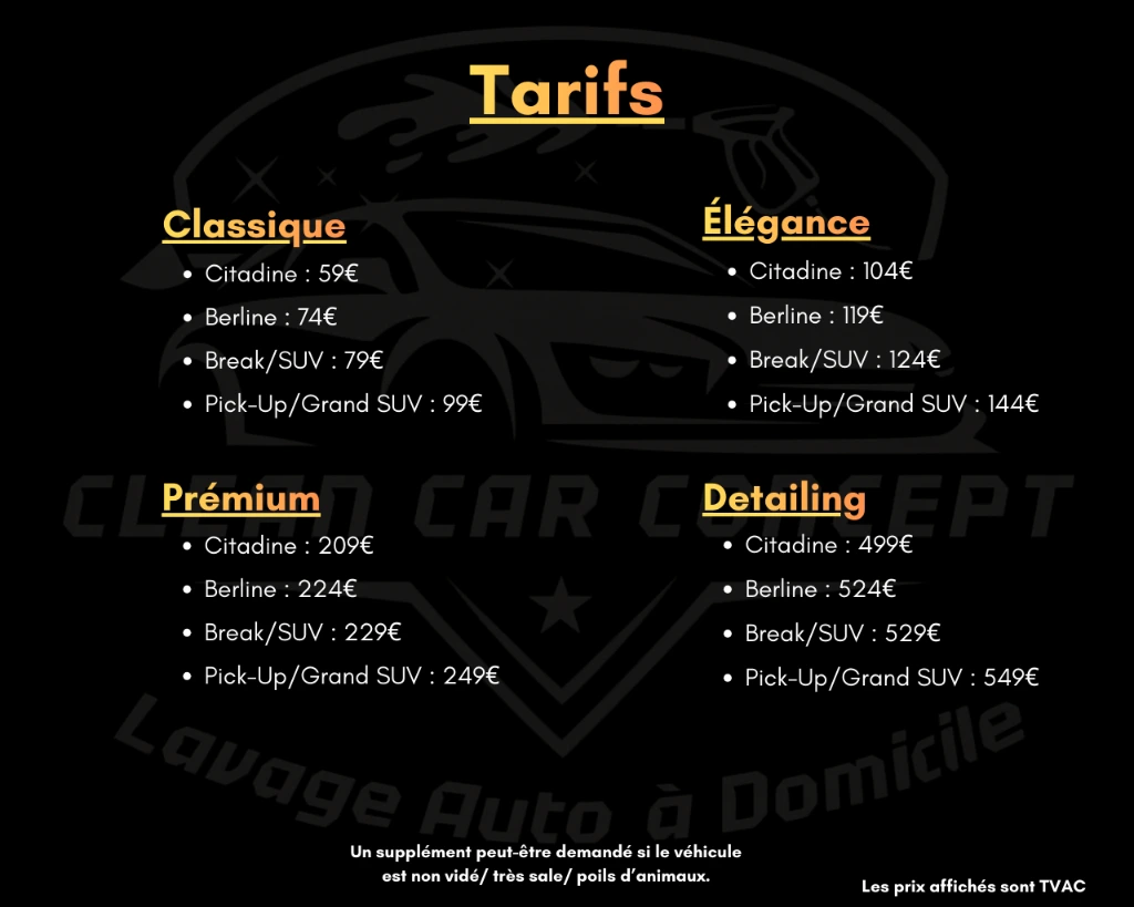 Des prestations haut de gamme pour corriger, protéger et sublimer durablement votre véhicule, avec des tarifs adaptés à chaque niveau de finition.